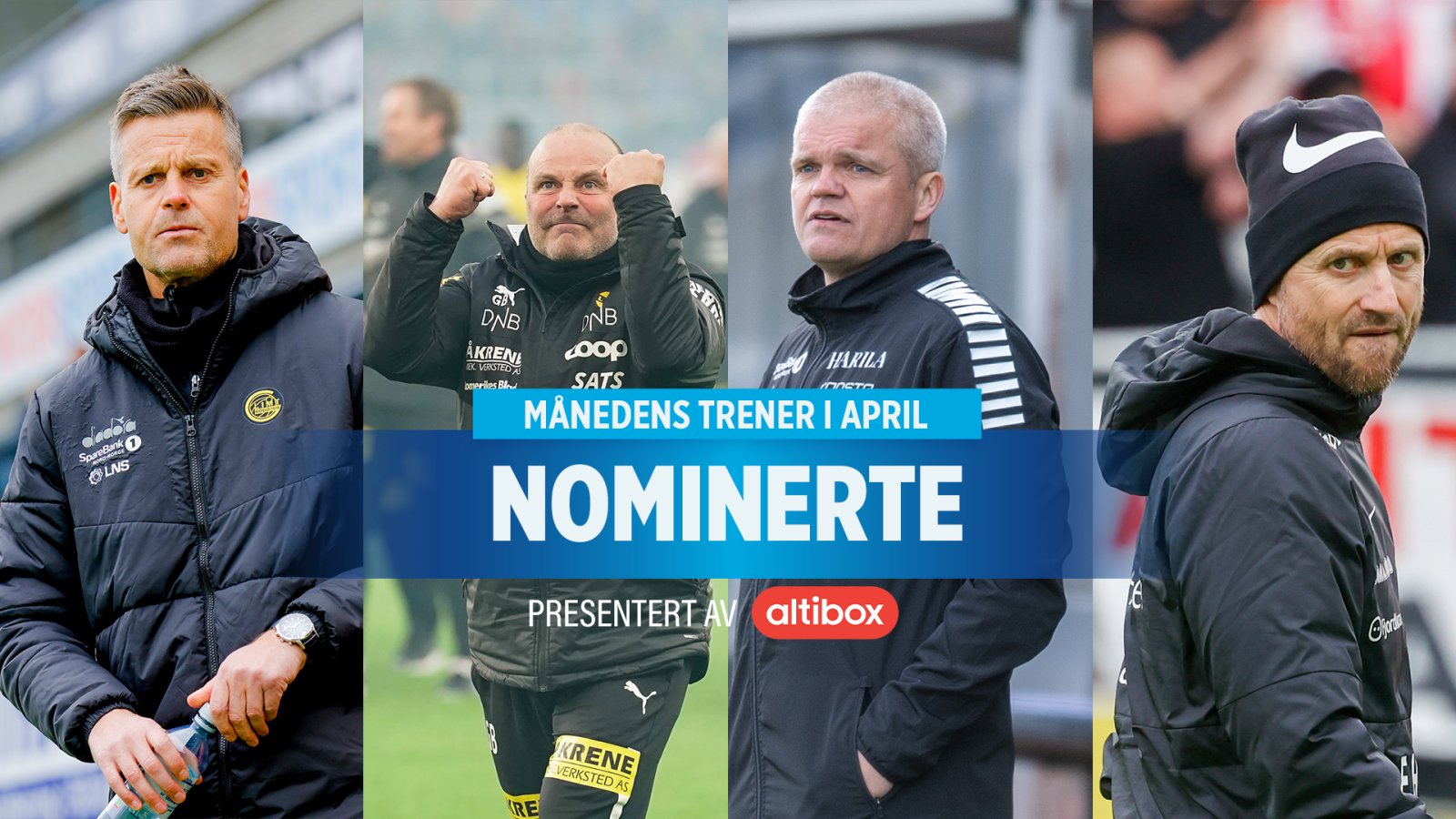 Kjetil Knutsen, Geir Bakke, Gaute Helstrup og Eirik Horneland er i samarbeid med Altibox nominerte til månedens trener i Eliteserien for april.