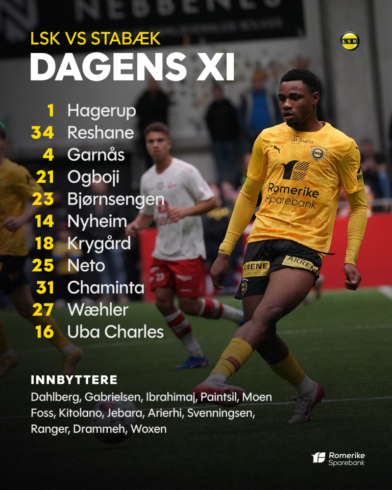 Her er de elleve utvalgte som starter treningskampen mot Stabæk i LSK-hallen kl. 14:00.
