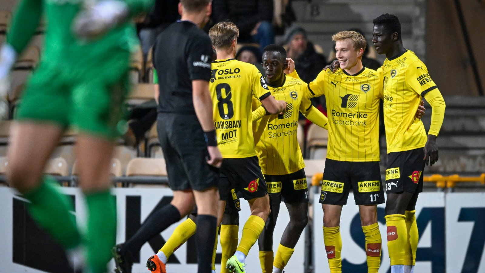 Nye bytter fra benken like etter scoringen. Harald Woxen og Kristoffer Tønnessen erstattet Salieu Drammeh og Frederik Elkær.
