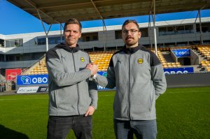Ola Sydow Rasmussen (31) - som nærmer seg veteran-status i akademiet - har signert på en ny toårsavtale som G15-trener og toppspillerutvikler for aldersgruppa 13 til 17 år. Det er LSK-akademiets administrative leder Oscar Killingmoe (til venstre) glad for.
