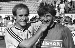 Det er med stor sorg vi har mottatt budskapet om at Rune Richardsen er død, 60 år gammel. Den mangeårige LSK-spilleren - her fotografert med Mjøndalen-keeper Roy Amundsen etter at han ble matchvinner i 1987 - gikk bort 27. juli.