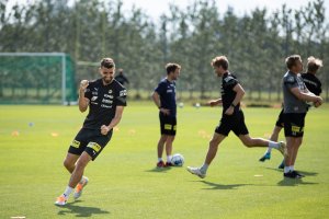 A-laget trener på Vigernesjordet lørdag formiddag før avreise Haugesund.