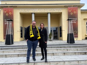 Som du ser på bildet: Lillestrøm Kultursenter og Lillestrøm Sportsklubb går (nesten) hånd i hånd! Her representert ved Glenn Due-Sørensen og Kari Herredsvela.
