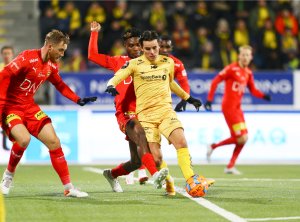 (Bodø/Glimt - Lillestrøm 2-0) Hugo Vetlesen (bildet) la innlegget som endte med at Glimt tok ledelsen, men var ballen ute, eller var den det ikke? TV-bildene kunne ikke gi noe klart svar. Uansett: Hjemmelaget vant fortjent - selv om LSK skapte flere store sjanser mot slutten av kampen.