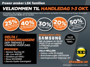Power Strømmen inviterer til handledager med gode rabattprosenter 1-3. oktober. Her kan LSK-familien gjøre meget gode kupp.