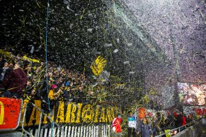 En gul og svarts patriot's mektige hjem står uten supportere i første omgang, men fra sofaen skal Kanari-Fansen synge og heie frem gutta som aldri før. Nå har KFL kommet med det største enkeltbidraget til #Sofakamprekord så langt.