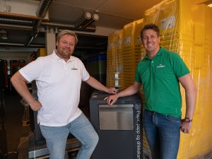 Rentas Henrik Sognnæs og Lillestrøms Jørgen Heen Enger smilte bredt da de kunne annonsere at samarbeidet fortsetter i to år til.
