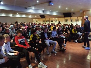 Åråsen konferansesenter var fylt til randen av unge LSK-spillere med foreldre da Wang-sportssjef Petter Myhre (bildet), rektor Gina Kveen, toppidrettssjef Kristian Hammer og LSKs utviklingsleder Toni Ordinas snakket om viktigheten av skole og fotball i skjønn forening.