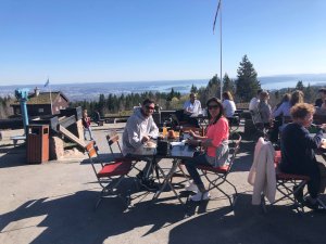 Daniel A. Pedersen har fått besøk av foreldrene Mona og Hans - og benyttet påskeaften til en bedre familielunsj i Holmenkollen.